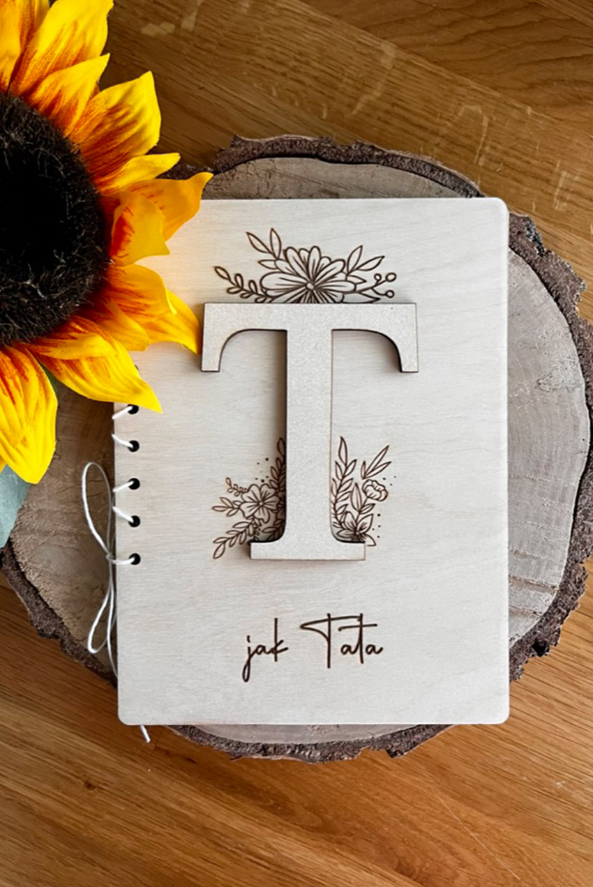 – Grawer: kwiatowy motyw, grafika dłoni i napis „Tata – pierwszy bohater syna”, „pierwsza miłość córki”