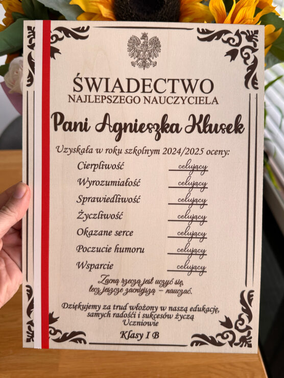 Wykonana z naturalnej sklejki o łącznej grubości ok. 9 mm, grawerowana z wyjątkowym przesłaniem i miejscem na zdjęcie, które wywoła uśmiech na twarzy każdego Taty.