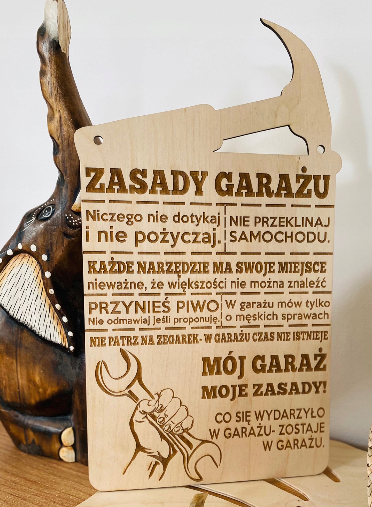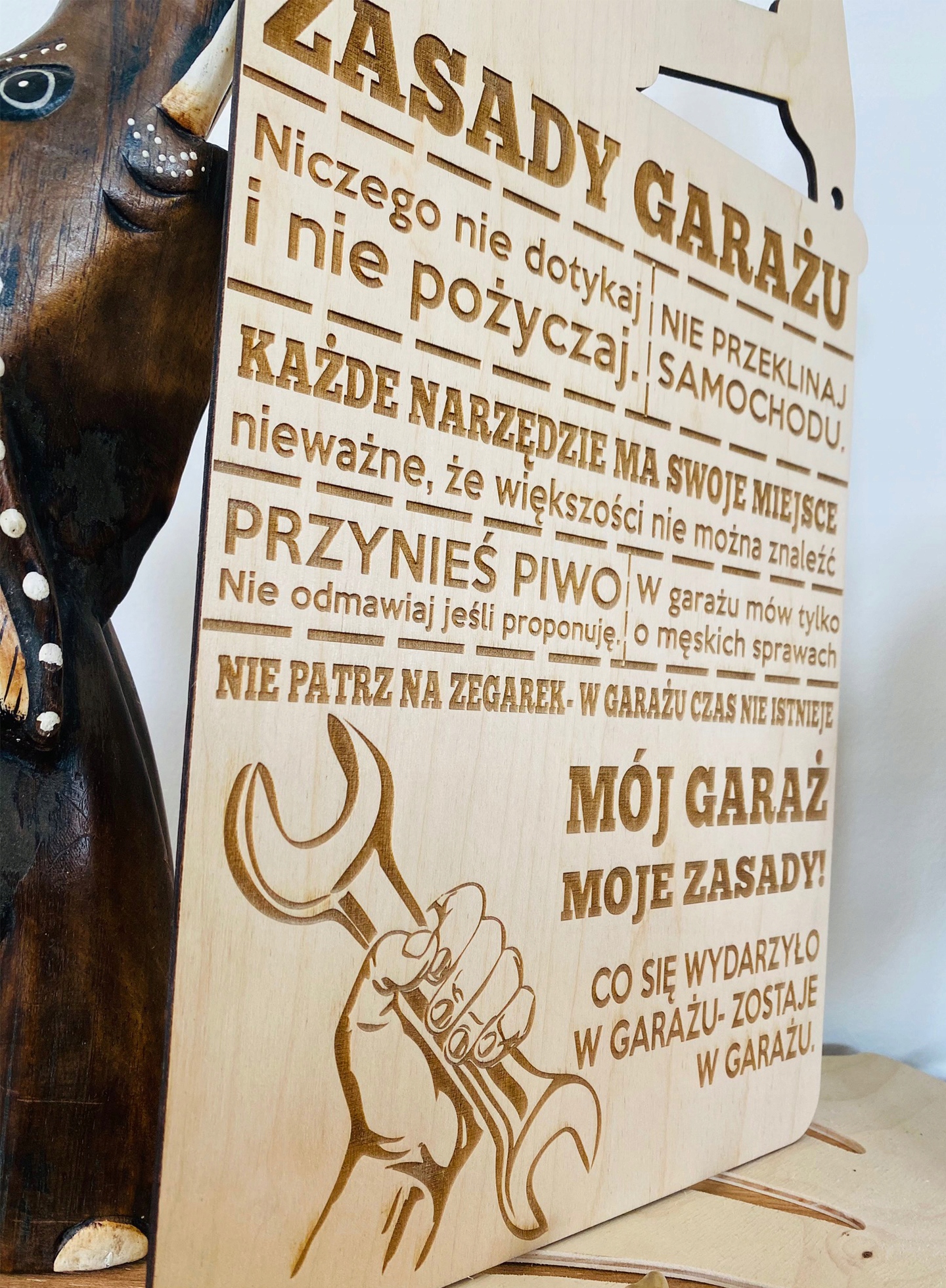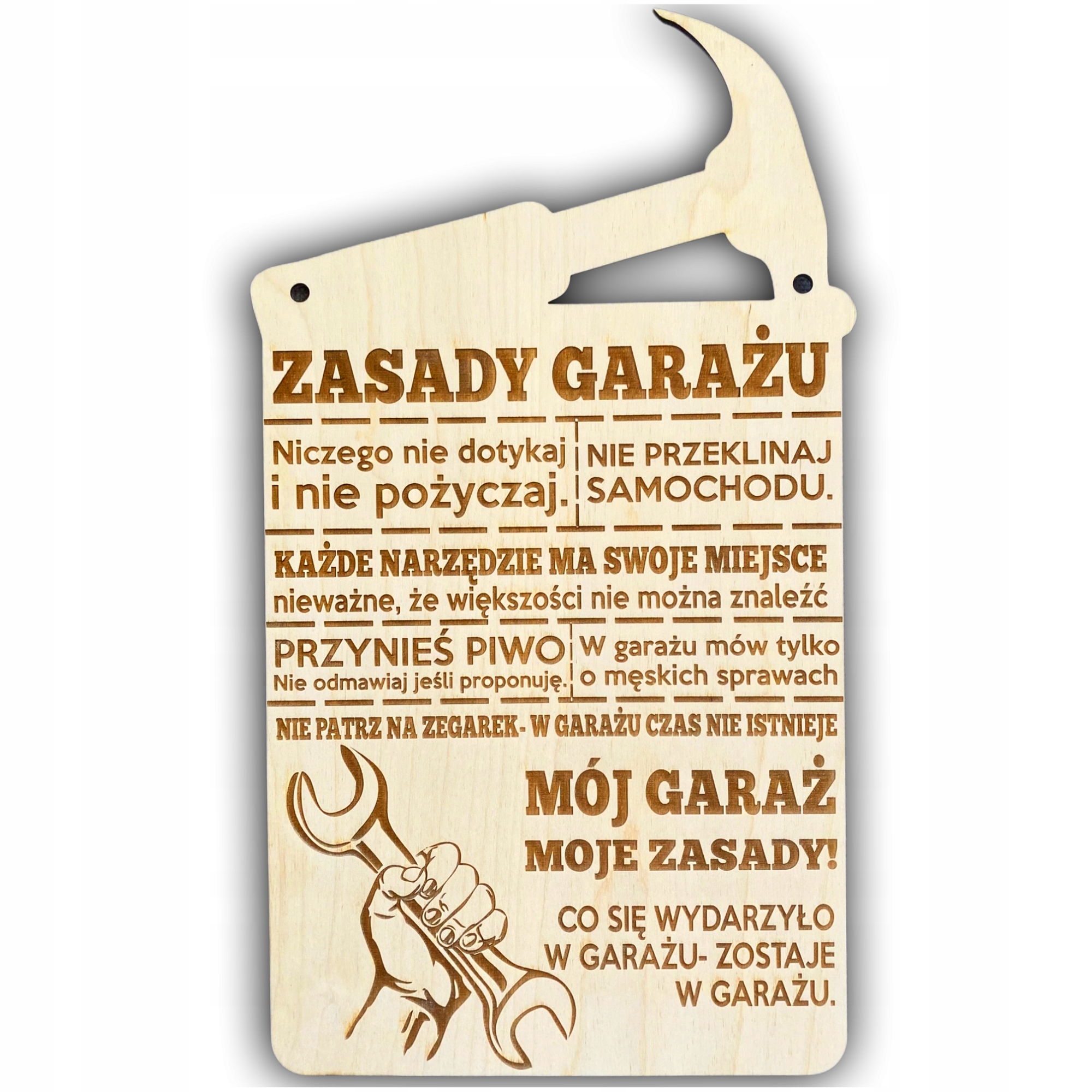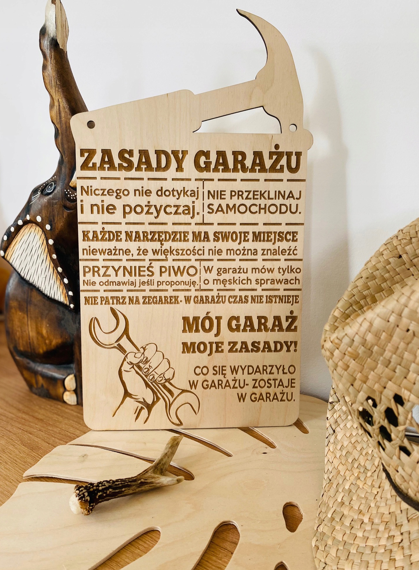 DREWNIANA TABLICZKA ZASADY GARAŻU EKSTRA PREZENT