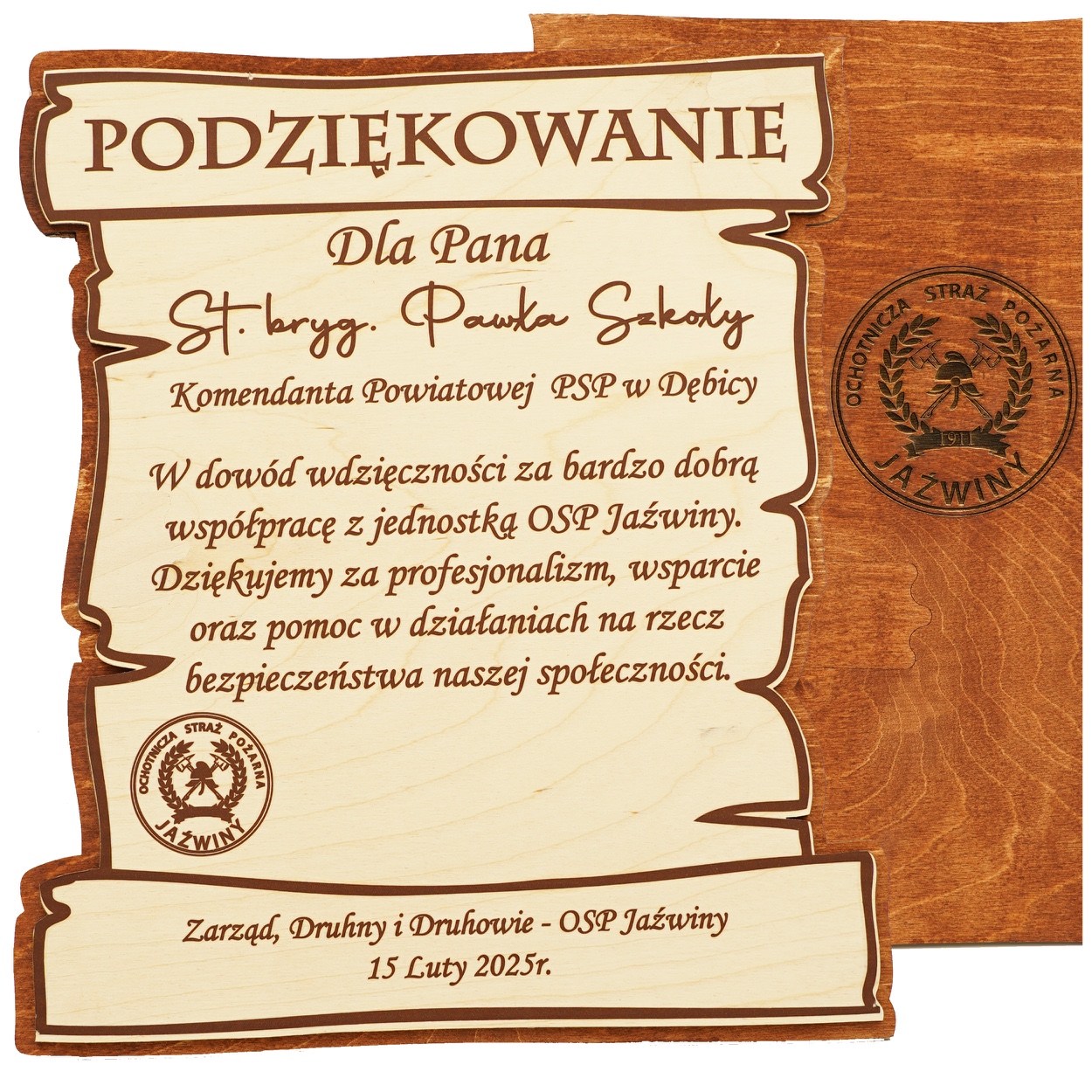 PODZIĘKOWANIE DLA STRAŻAKÓW WÓJTA KOLEGI KOLEŻANKI SZEFA PRACOWNIKA