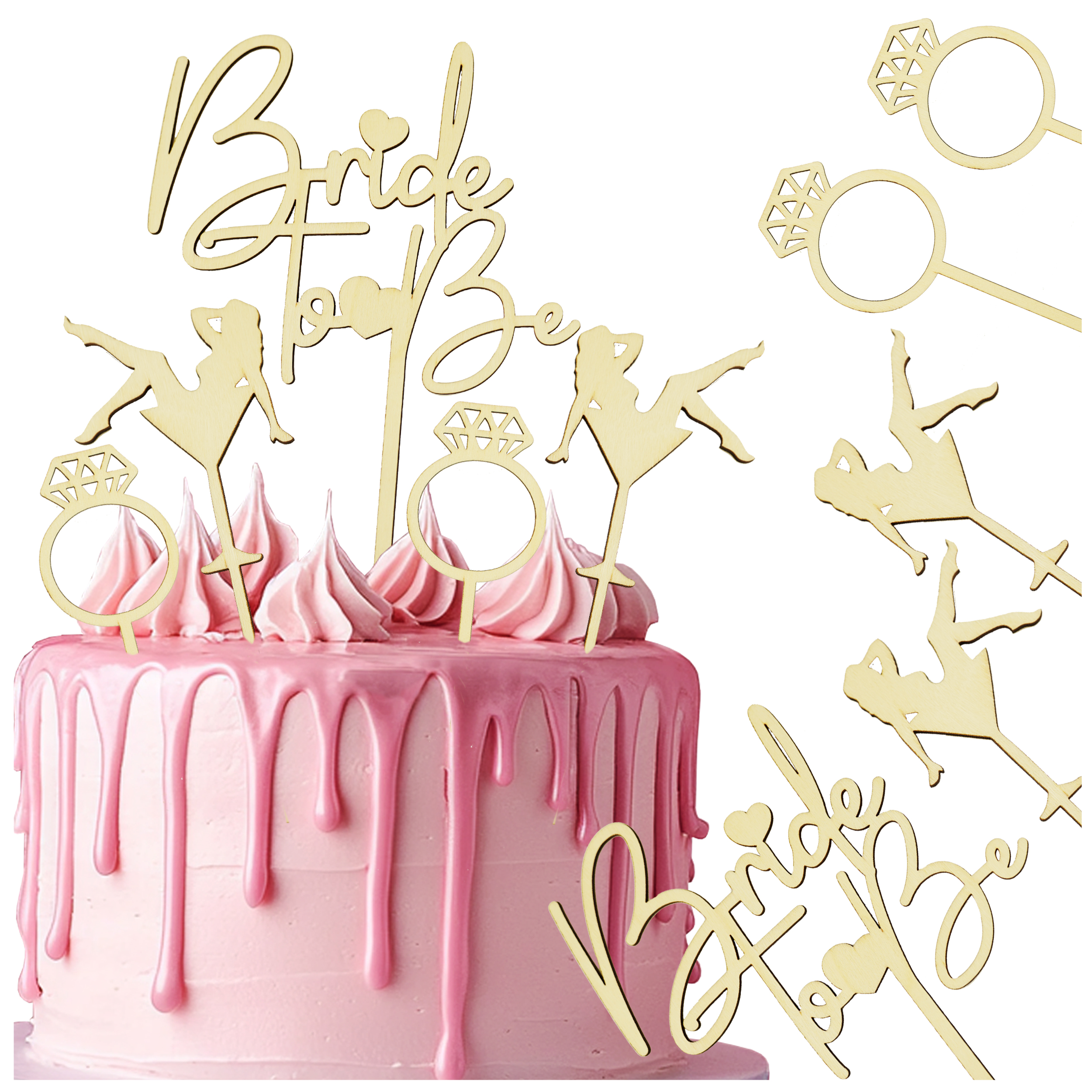 TOPPER NA TORT ZESTAW TOPPERÓW NA TORT WIECZÓR PANIEŃSKI BRIDE TO BE